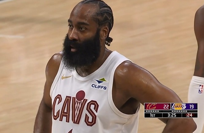 着了你的道!八村塁防守时手臂高举 哈登瞅准时机挂到造三分犯规